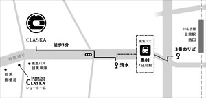 「CLASKA」 の8Fをすべて使って展示いたします。 ファニチャー通りとして有名な 「目黒通り」 に面しています。
